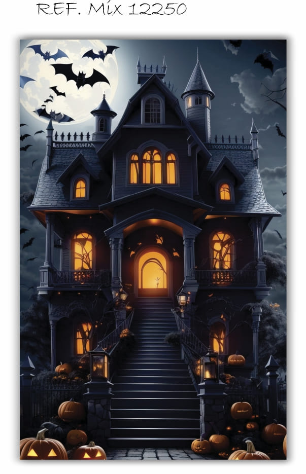 Painel Festa Retangular Em Tecido Halloween Castelo