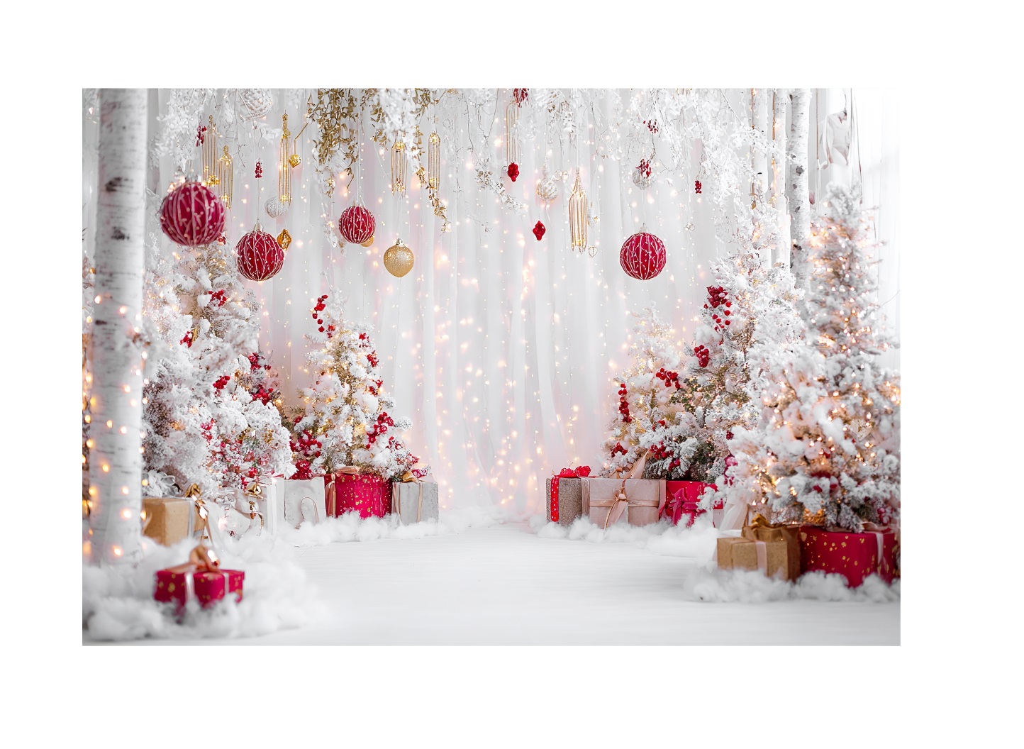 Fundo Fotográfico Árvores de Natal Branca com luzes