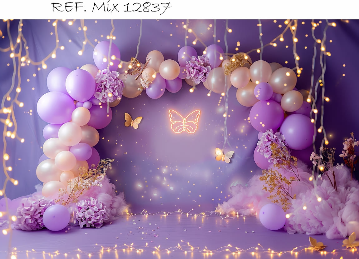 Fundo Fotográfico Balões e fundo lilás Borboleta
