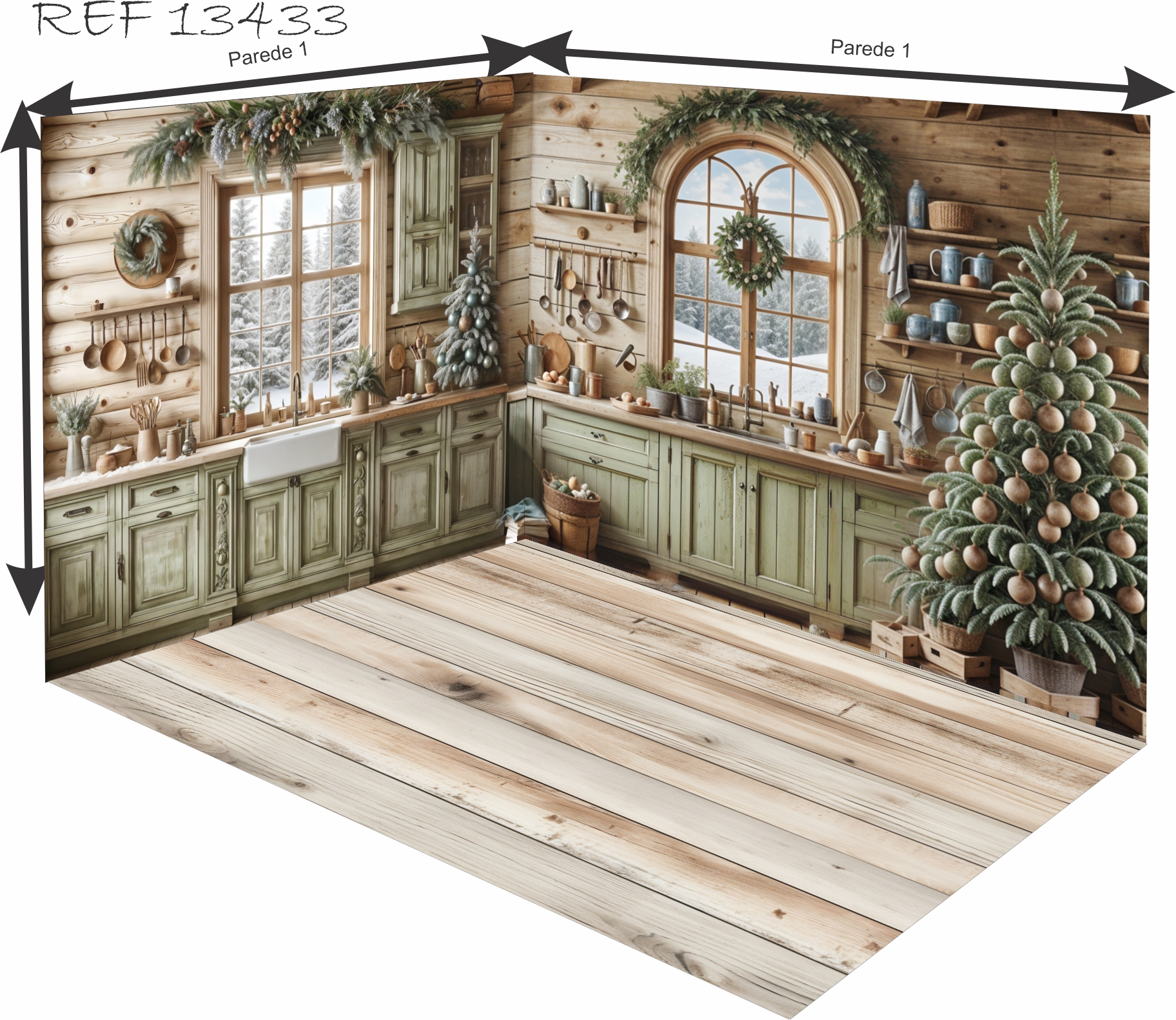Fundo Fotográfico Cenário 3D Natal (parede e chão)
