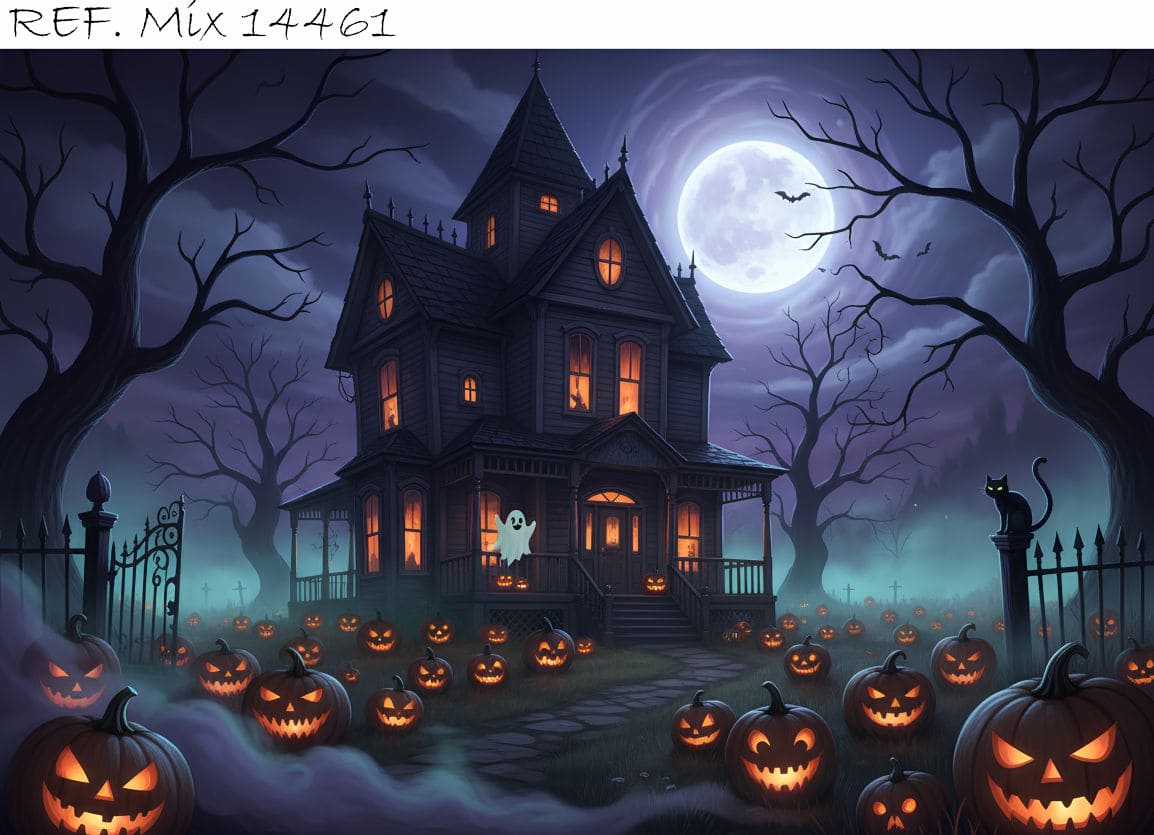 Fundo Fotográfico Mansão Luar Halloween