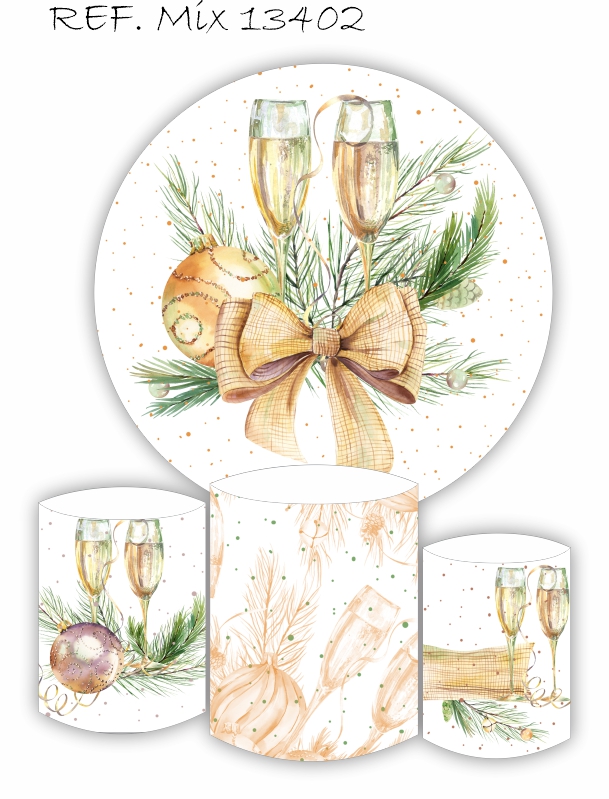 Kit Painel Redondo Sublimado Ano Novo + Trio de Cilindros Veste Fácil