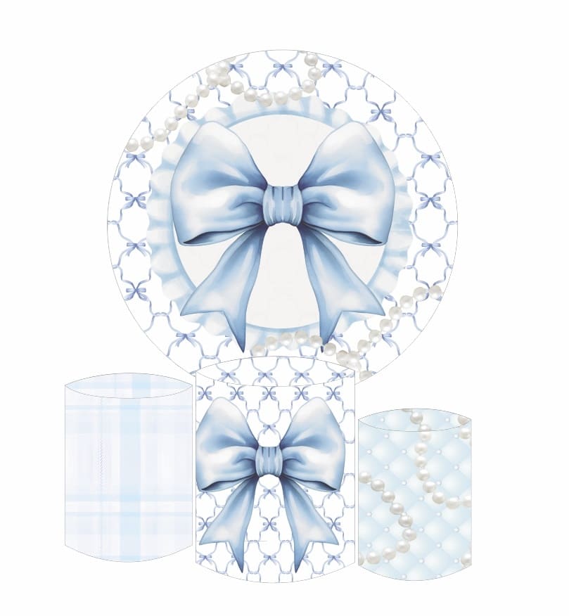 Kit Painel Redondo Sublimado Laço azul + Trio de Cilindros Veste Fácil