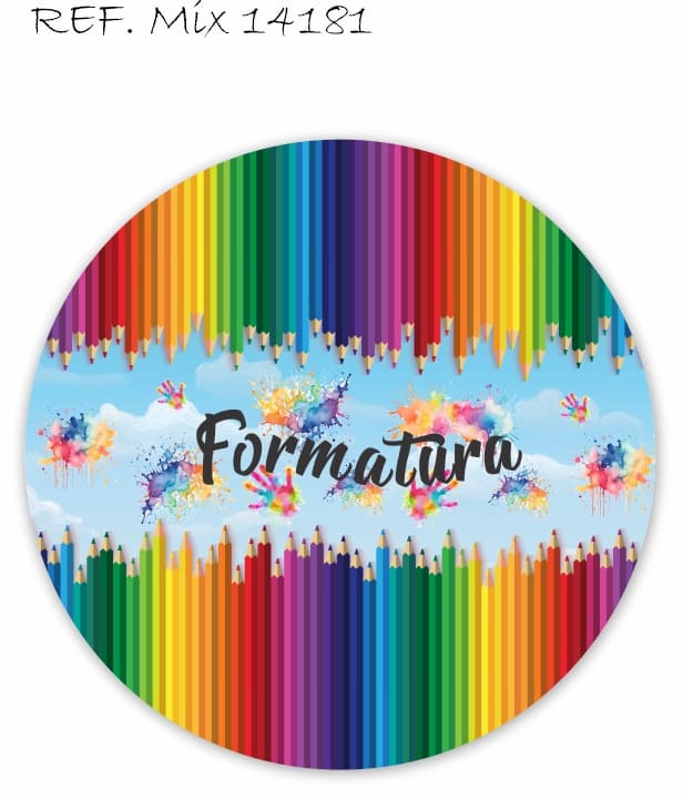 Painel Festa Redondo Sublimado Formarura Lápis Coloridos