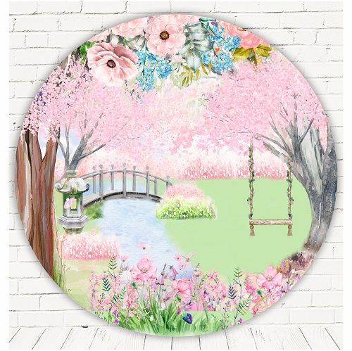 Painel Festa Redondo Sublimado Jardim C/elástico