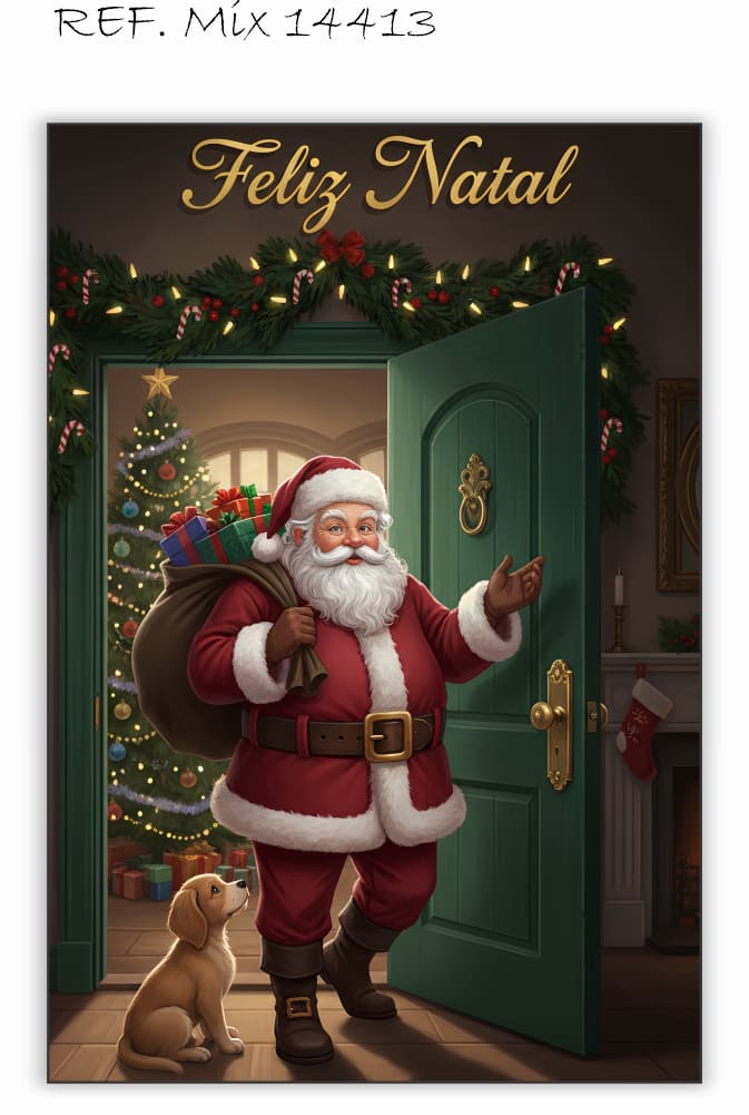 Painel Festa Retangular Em Tecido Papai Noel