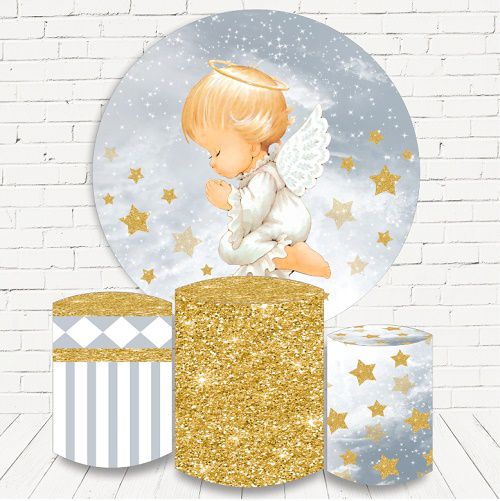 Painel Redondo Sublimado Batizado + Trio de Cilindros Veste Fácil
