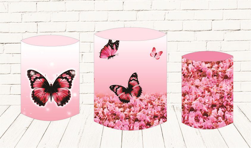 Painel Redondo Sublimado Borboleta + Trio de Cilindros Veste Fácil