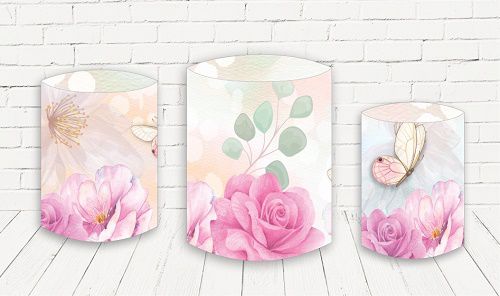 Painel Redondo Sublimado Borboleta + Trio de Cilindros Veste Fácil