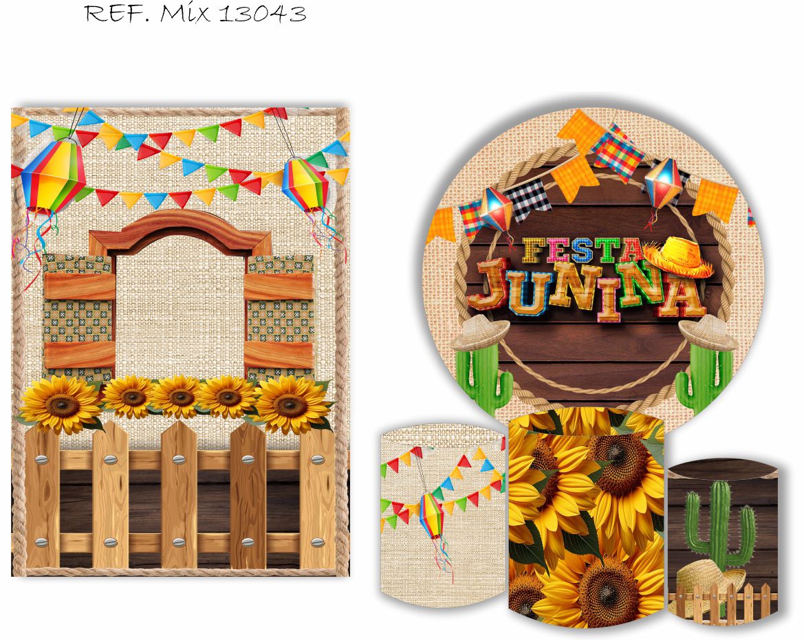 Painel Redondo Sublimado Festa Junina + Trio de Cilindros Veste Fácil + Painel Lateral