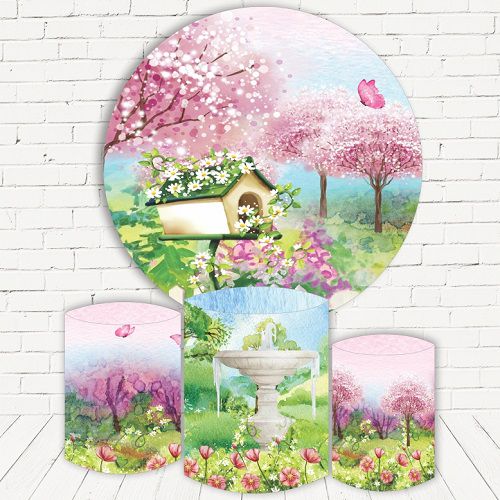 Painel Redondo Sublimado Jardim + Trio de Cilindros Veste Fácil