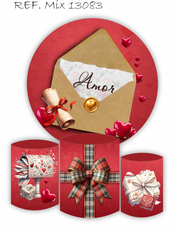 Painel Redondo Sublimado Romantico + Trio de Cilindros Veste Fácil