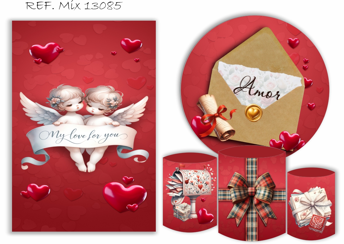 Painel Redondo Sublimado Romantico + Trio de Cilindros Veste Fácil + Painel Lateral