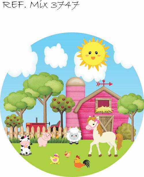 Painel Festa Redondo Sublimado Fazendinha C/elástico