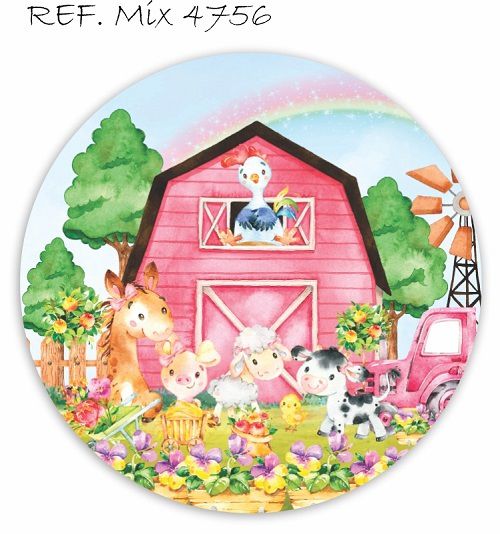 Painel Festa Redondo Sublimado Fazendinha C/elástico