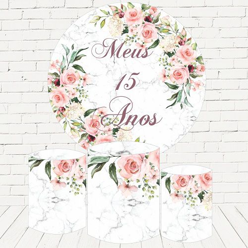 Painel Redondo Sublimado 15 anos + Trio de Cilindros Veste Fácil