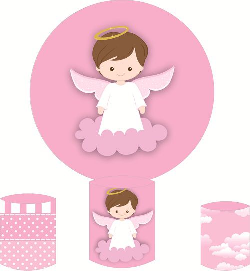 Painel Redondo Sublimado Batizado + Trio de Cilindros Veste Fácil