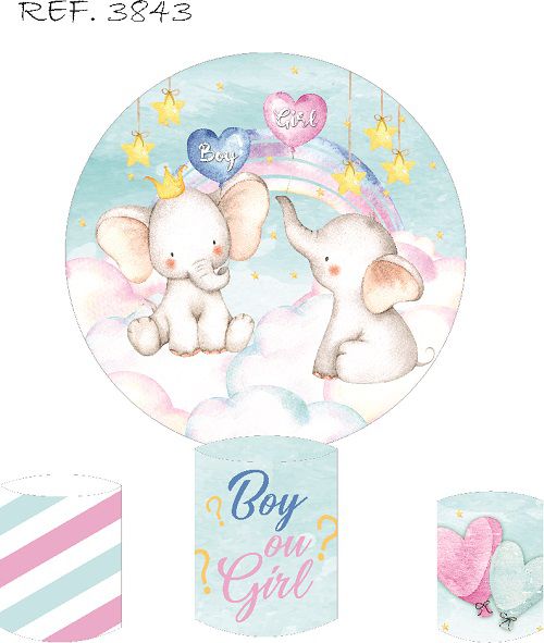 Painel Redondo Sublimado Chá Revelação + Trio de Cilindros Veste Fácil