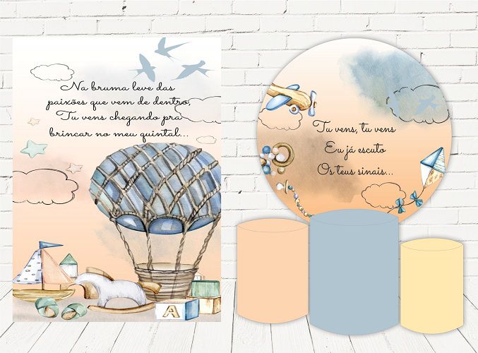 Painel Redondo Sublimado Chá Revelação + Trio de Cilindros Veste Fácil + Painel Lateral