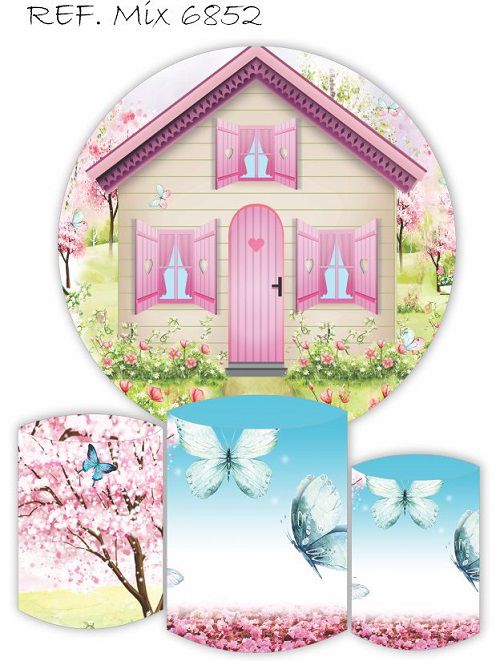 Painel Redondo Sublimado Jardim + Trio de Cilindros Veste Fácil