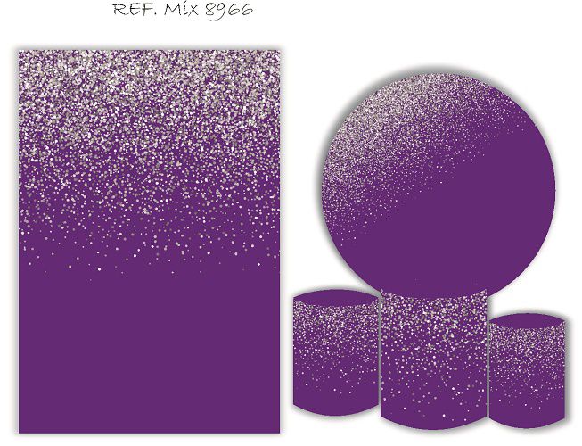 Painel Redondo Sublimado Roxo Com Glitter + Trio de Cilindros Veste Fácil + Painel Lateral